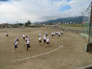 今回は校庭での10分間走を行いました。